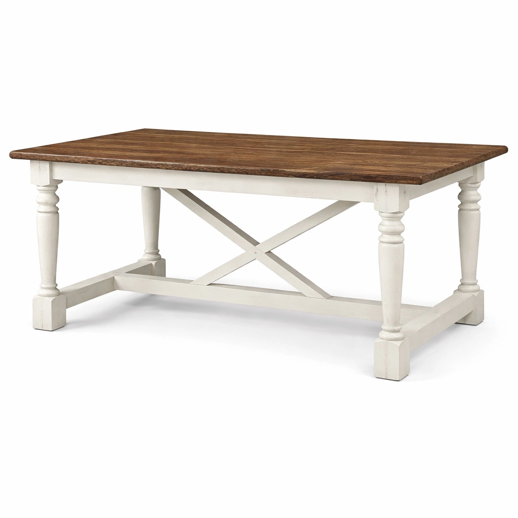 Mesa de comedor de madera maciza marrón y blanco 150x90x76 cm